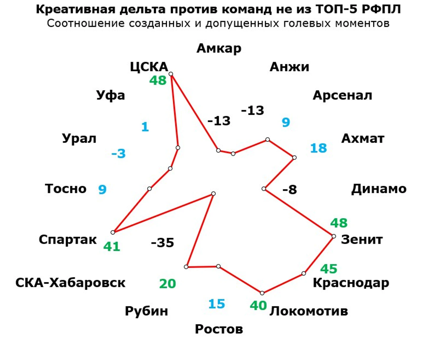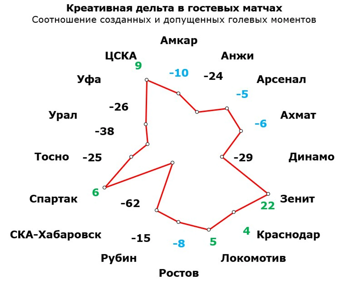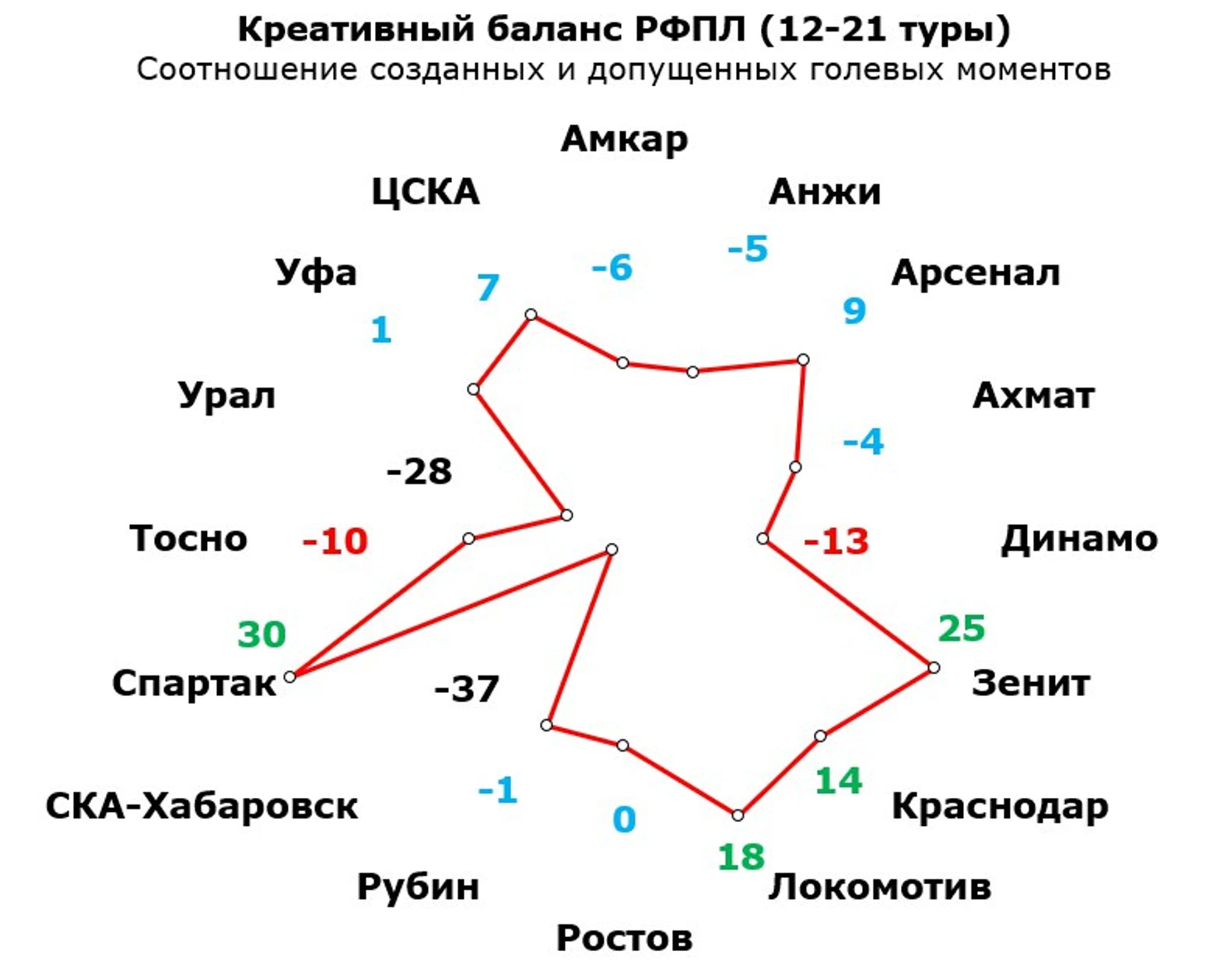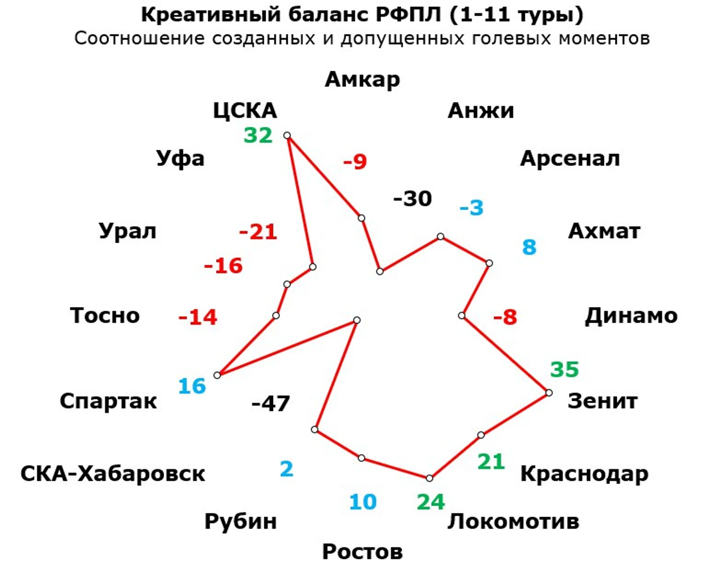 Сводный креативный баланс, как и любой другой усредненный статистический показатель, не является абсолютным мерилом качества, но на определенные выводы в отношении игрового потенциала команд (и реализации этого потенциала тоже) все же наталкивает: