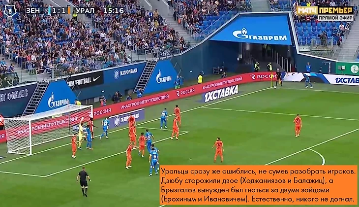 Судя по всему, Парфенов сфокусировал внимание своей команды на Дзюбе, за которого в большинстве ситуаций отвечал самый высокий в составе «Урала» Балажиц (190 см).