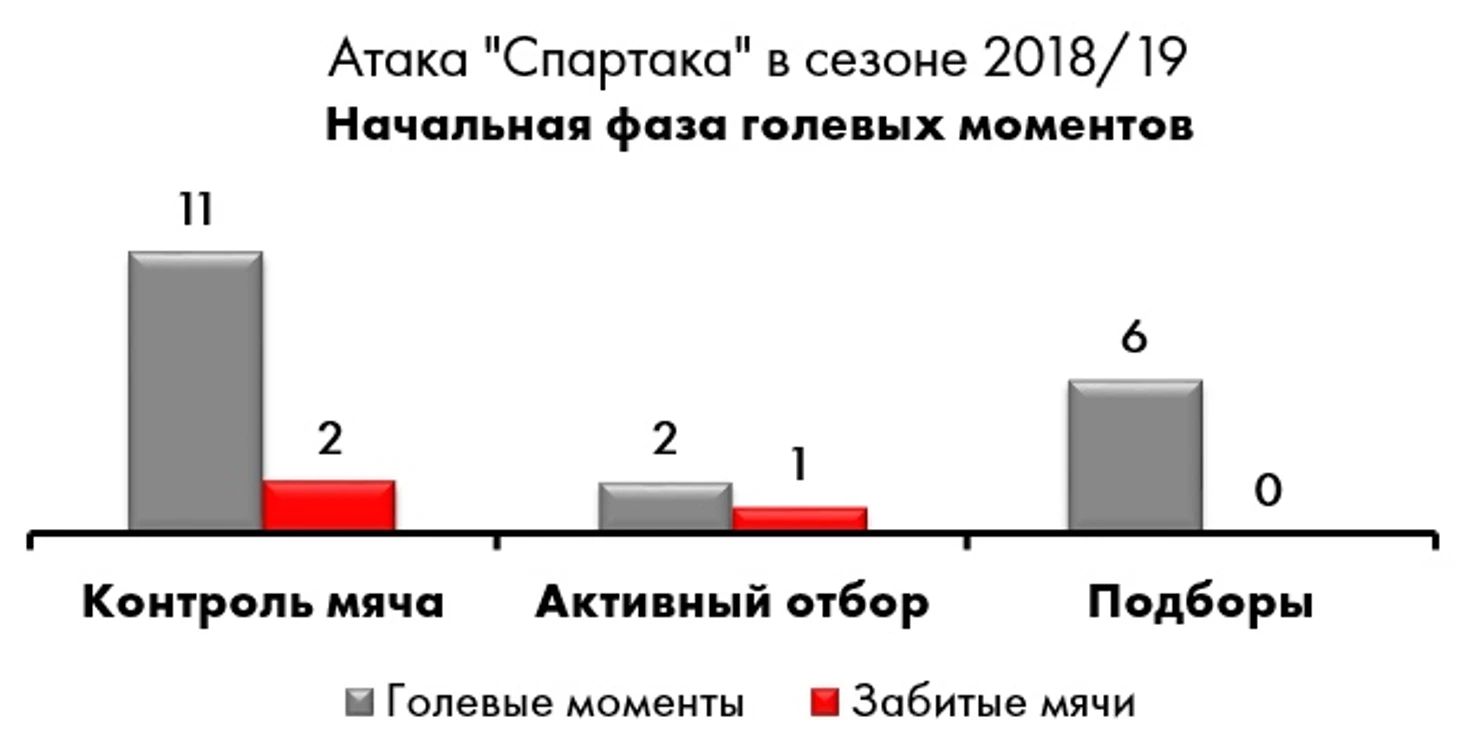 Если в матчах с «Оренбургом» и «Динамо», в которых спартаковцы забивали в дебюте, их некоторую пассивность в дальнейшем можно объяснить подспудным желанием «подсушить» игру и где-то перестраховаться, то против «Краснодара» организованной игры в атаке не получилось вовсе (только 1 момент «с игры» за 90 минут).