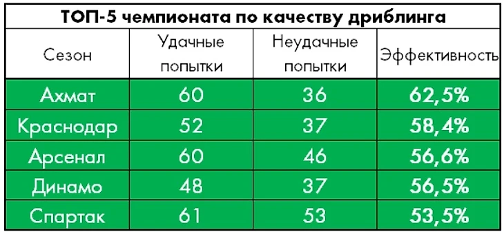 Оценивать качество дриблинга только лишь на основе общих цифр нужно с опаской, но продвинутая контекстная статистика подтверждает: дриблинг «Ахмата» - оружие действительно мощное.