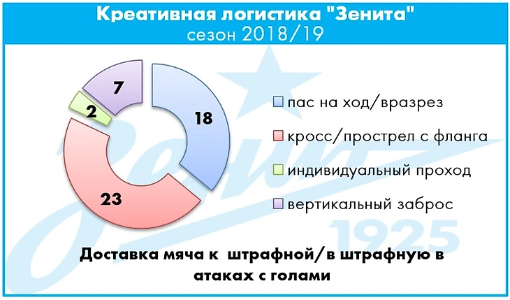 В текущем сезоне более половины зенитовских голов были забиты в атаках с верховой доставкой мяча в зону удара – либо через подачу с фланга, либо с помощью вертикальной передачи из глубины.