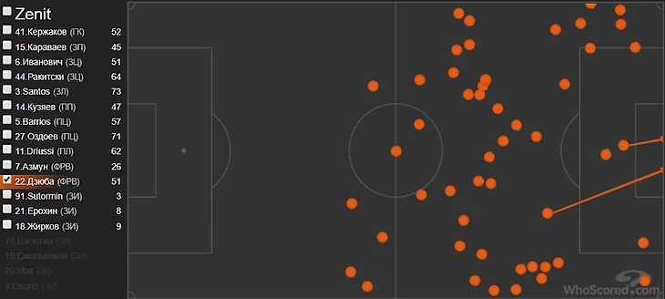 При этом по объему единоборств Дзюба стал с отрывом лучшим в составе обеих команд (37), действуя в привычно широком диапазоне и активно участвуя в розыгрыше (30 передач, у Азмуна – только 15), а по точности (87% – для любого форварда однозначно топ-уровень) стал вторым после Ивановича (89%).