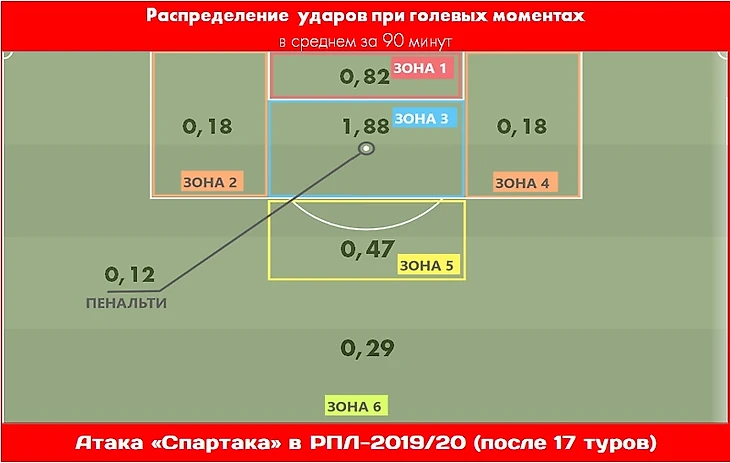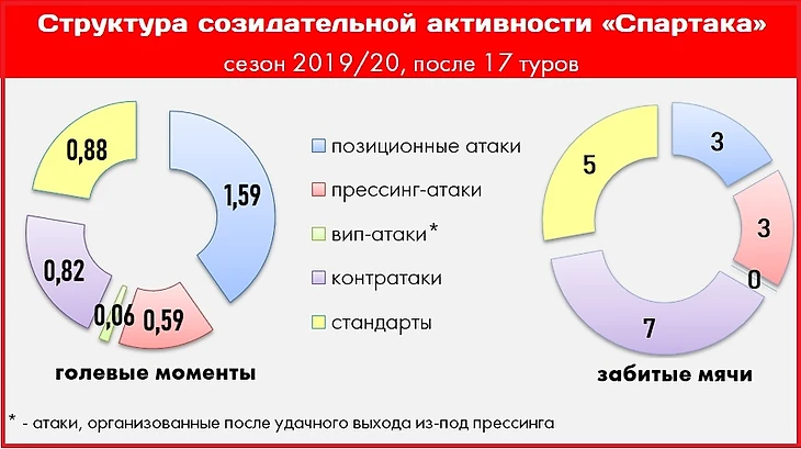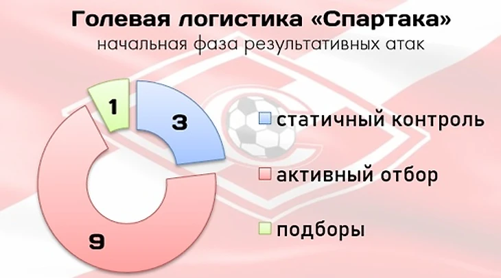 В переходных фазах (контратаки + прессинг) после отборов/перехватов/подборов, когда у команды появлялась возможность атаковать на пространстве, спартаковцы забили сразу 10 мячей (лишь на два меньше, чем «Зенит»).
