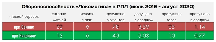 10. На летнем отрезке при Марко Николиче «Локомотив» поначалу приобрел очертания бронепоезда: в 10 матчах в рамках премьер-лиги команда 6 раз сохраняла ворота «сухими» - в предыдущих 22 матчах при Семине было столько же. Однако после потери Баринова и Алексея Миранчука в первом тайме матча со «Спартаком» в трех последующих таймах «Локомотив» пропустил сразу 5 мячей.