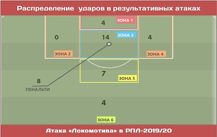 13. «Локомотив» в целом очень плотно обороняется перед своей штрафной (во многом это заслуга сыгранной связки опорников Крыховяк – Баринов), но при этом регулярно проваливается на флангах. За последний год в рамках премьер-лиги (35 матчей) после комбинаций через центр «железнодорожники» пропустили только 11 мячей, а вот после фланговых атак – сразу 25 (13 – слева, 12 – справа). По голу с каждого из флангов «Локо» получил и от «Зенита» в недавнем матче за Суперкубок.