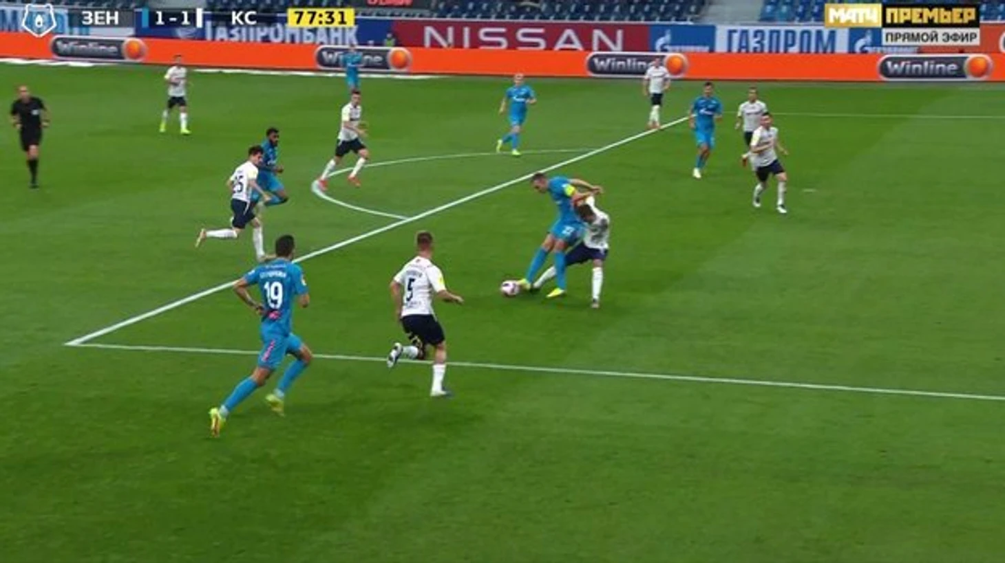 По сути, единственной явной ошибкой арбитра Мешкова в пользу «Зенита» за весь матч стало невынесение желтой карточки Барриосу за умышленную откидку рукой мяча в первом тайме. При этом две ошибки в пользу «Крыльев» - с нефиксацией фола на Малкоме и офсайда Глушенкова – были не только явными, но и результативными.