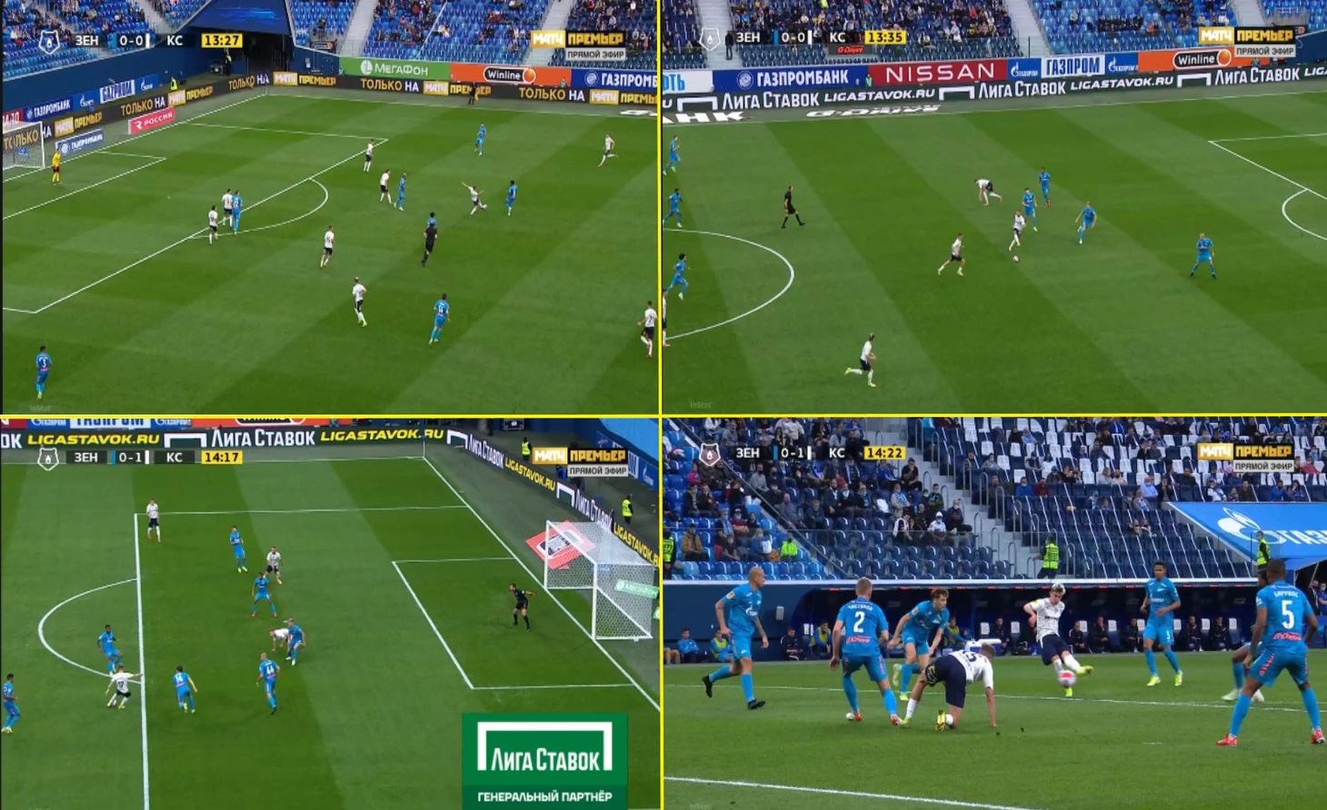 В то же время отменять этот гол из-за фола на Малкоме, если бы видеоарбитры разглядели хотя бы его, точно не стоило – по той простой причине, что голевая атака «Крыльев» началась вовсе не с этого фола (13.11 по таймингу), а стартовала с перехвата Якубы (13.27 по таймингу) уже после того, как «Зенит» успел вернуть себе мяч и попытался организовать новую волну атаки. Таким образом, между фолом на Малкоме и голом Зиньковского уместились две не связанные друг с другом атакующих фазы со стороны обеих команд.