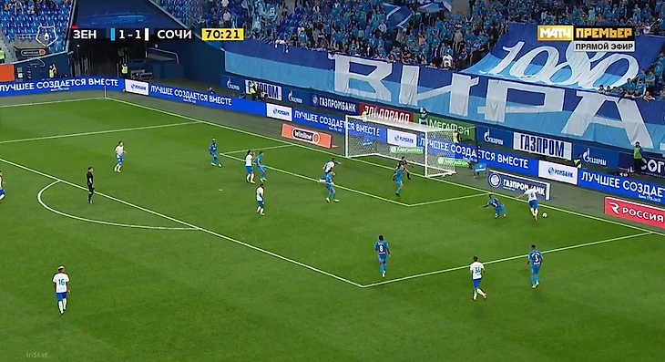 Таким образом, зенитовским защитникам нужно было в обязательном порядке сдвигать структуру направо, чего они почему-то не сделали.