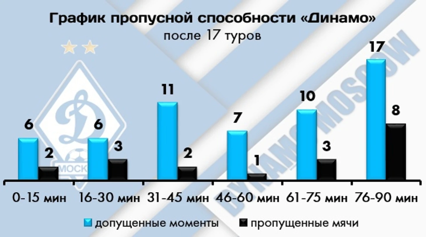В свою очередь, и в обороне частота ошибок резко возрастает на фоне усталости в концовках таймов, а финишная 15-минутка для «Динамо» – почти всегда испытание, но и нередко – просто мучение.