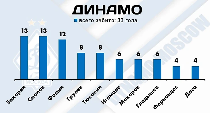 После прошлогодней бронзы «Динамо» на старте сезона долго раскачивалось, но ближе к зиме остроатакующую игру таки нащупало. 4 победы в 5 предзимних турах при 14 забитых мячах позволили бело-голубым подняться в топ-5, а их лидерам нападения – подправить персональную статистику.
