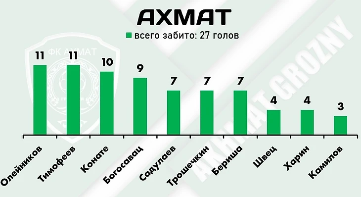 Помимо Каштанова, осенью в РПЛ внезапно блеснул и еще один выскочка из второй лиги – Иван Олейников. Атакующий полузащитник в прямом смысле был «первым парнем на селе» Песчанокопском, набрав сумасшедшие 23+16 в 30 матчах за местную «Чайку» по итогам прошлого сезона. В Грозном Иван ведет себя поскромнее, но тоже не потерялся, став самым продуктивным игроком команды на осеннем отрезке (1,05 голевых соучастий / 90 минут).