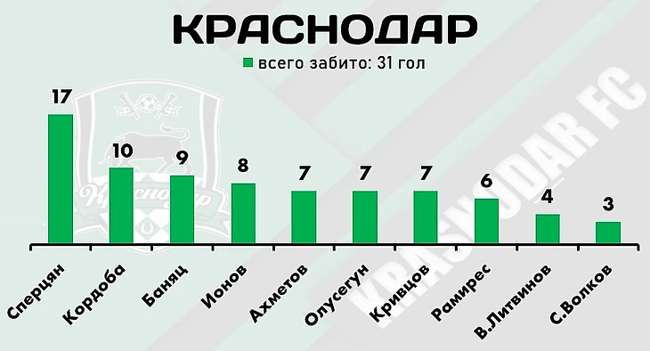 Несмотря на вынужденно-перестроечный сезон, «Краснодар» по мере сил и средств старался сохранять атакующие черты игрового стиля, чему максимально поспособствовала вдохновенная игра одного из самых талантливых местных воспитанников. Эдуард Сперцян уже в прошлом сезоне громко заявил о себе, организовав почти половину голов команды (19 из 41 в 25 сыгранных матчах), а в этом окончательно утвердился в роли лидера «быков» и одного из самых креативных игроков лиги. Сперцян – мозг команды в позиционном розыгрыше (уже 5 голов после его передач вразрез!), и выход в быстрое нападение, и большинство стандартов.