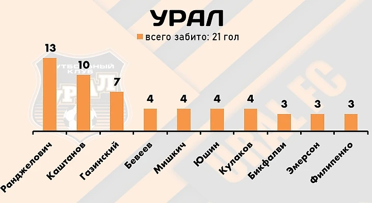 В 7 стартовых турах «Урал» сподобился на один единственный гол, но дальше ударными темпами начал штамповать в среднем по 2 гола за матч, причем забивал без исключения всем.
