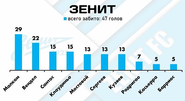 Но, пожалуй, самое любопытное, что именно Вендел – абсолютный лидер «Зенита» по вкладу в победные голы – 11 против 7 у идущего вторым Малкома. Учитывая, что всего «Зенит» в 17 турах одержал 13 побед, нетрудно вычислить скромный остаток, а заодно осознать, что в заочном споре за титул лучшего игрока чемпионата у Малкома и Промеса есть сильный и очевидно недооцененный широкими массами конкурент.