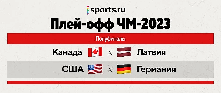 Это неожиданный факт, но в новой истории США и Канада не встречались в финалах чемпионатов мира (последний раз в 1934-м – но это был почти другой хоккей), хотя и сам формат игр на вылет вернулся на турнир только 25 лет назад. На ЧМ-2023 это стало возможным – благодаря итогу четвертьфиналов и дальнейшей сетке: в полуфинале американцы сыграют с Германией, а Латвия попробует преподнести еще одну сенсацию – их ждет встреча с канадцами.