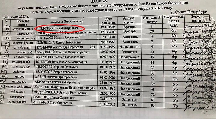 Телеграм-канал «За пределами Ленинградки» опубликовал состав на первую игру, из которого можно было узнать звание Ивана. Старший матрос Федотов провел первый матч достойно: сделал «сухарь» в матче с командой Западного военного округа, а его партнеры забросили аж 12 шайб.