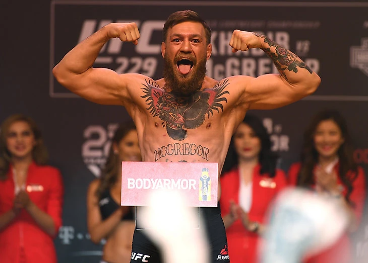 Ирландец попозировал перед камерами и стал с нетерпением ждать выхода россиянина. Когда Хабиб подходил к весам, Конор начал приближаться к нему, но президент UFC Дэйна Уайт не позволил бойцам сблизиться раньше времени.
