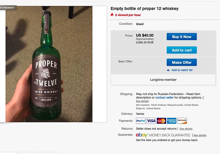Конор пообещал, что такого дефицита больше не будет. В 2019 году виски появится в Великобритании, Австралии, Новой Зеландии, России и Канаде. А пока купить пустую бутылку Proper 12 на Ebay можно за 2,680 рублей. Без учета доставки.