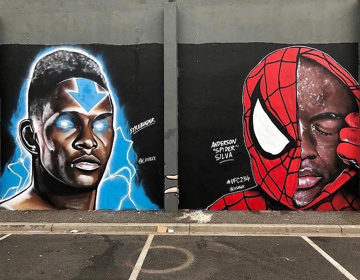 Австралийский художник-граффитист Lushsux представил бой Адесаньи с Андерсоном Силвой на UFC 234 как сражение Аватара против Человека-Паука. На фоне мощного граффити бразилец даже сделал селфи.