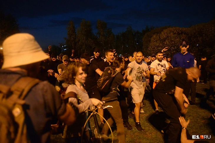 13 мая толпа заполонила сквер у Театра драмы в Екатеринбурге. Люди выступают против возведения здесь храма Святой Екатерины: им не нравится, что вырубят деревья и что с ними этот вопрос не обсудили. Когда акция стала агрессивной, разгонять собравшихся приехали бойцы Академии единоборств РМК.