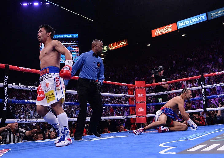 Перед вечером бокса в Лас-Вегасе чемпион WBA Super Кит Турман, до этого момента не проигрывавший, грозился нокаутировать Мэнни Пакьяо в первом раунде (потому что поставил на это деньги) и отправить филиппинца на пенсию (потому что моложе и сильнее).