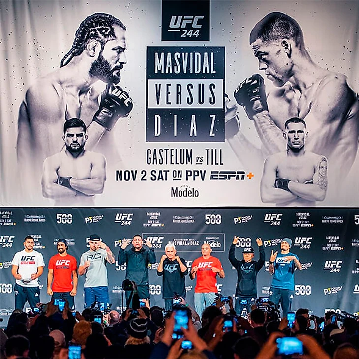 Нэйт Диас и Хорхе Масвидаль договорились о бое очень быстро: перед UFC 241 в августе Масвидаль выразил желание встретиться с гангстером Нэйтом, а Диас после победы над Энтони Петтисом выдал легендарную фразу про титул главного засранца, который он хочет защищать против Хорхе. Организация моментально подхватила эту историю, и бой утвердили как главный для турнира в Нью-Йорке.