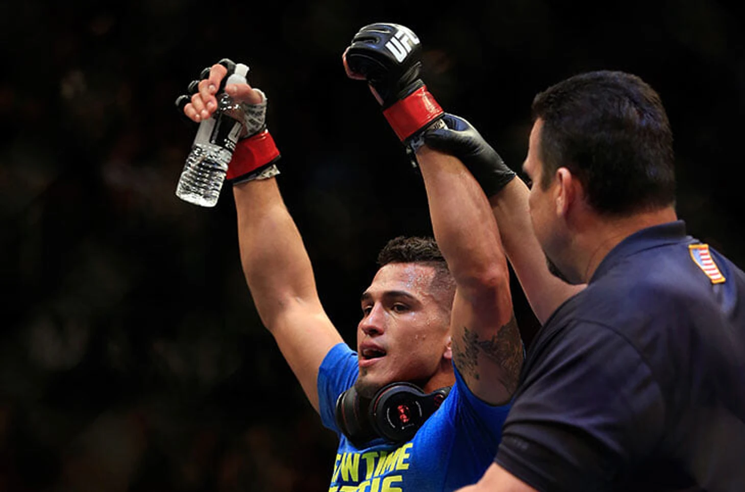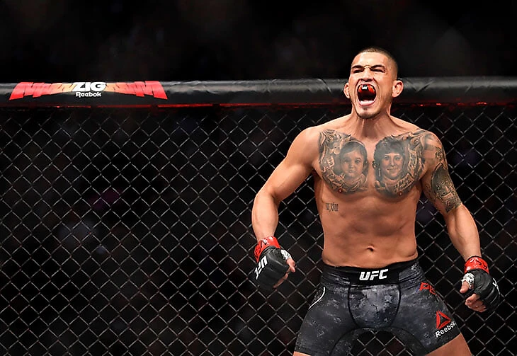 После победы фанаты назвали Энтони Шоутайм: им помогла татуировка на спине, а еще невероятные вертухи, удары ногами с сумасшедших углов и сальто после победы.