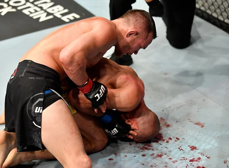 К середине 5-го раунда Жозе буквально залил октагон кровью.