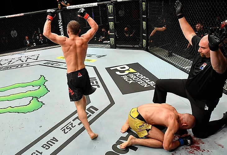 Рефери боя мог остановить избиение раньше, но давал шанс Жозе спастись. Ян все-таки дожал: победа техническим нокаутом!