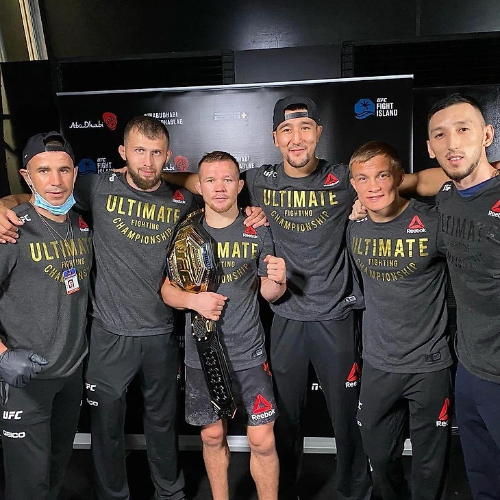 Петр Ян вместе с командой после победы на UFC 251.