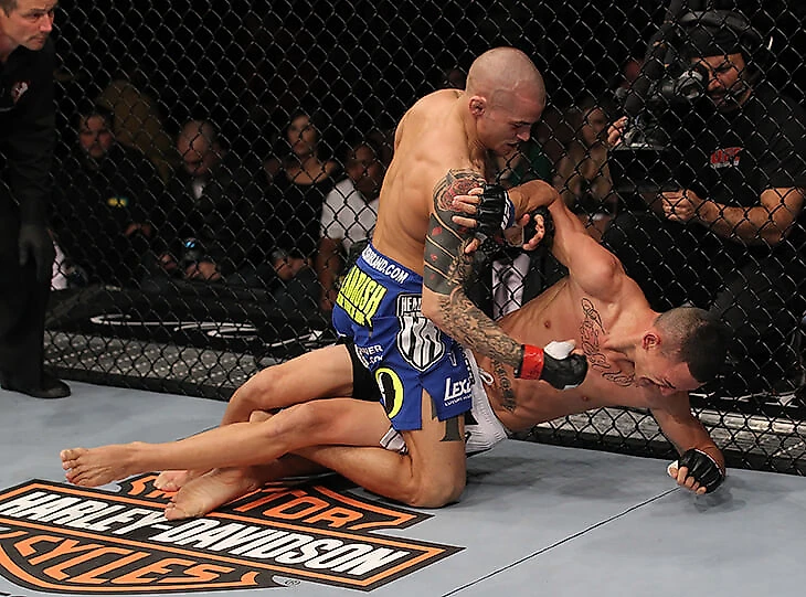 Дастин дебютировал в UFC в 2011 году (перешел после слияния с WEC) – на два года раньше Конора. Когда Макгрегор только забрал титул CWFC, Порье уже имел два бонуса в лучшей лиге мира: заставил сдаться Макса Холлоуэя и закатил рубку вечера с Корейским зомби. Изначально карьера Дастина складывалась не очень: он чередовал победы с поражениями, но в это же время показывал яркие бои с топами того времени, поэтому быстро полюбился публике.