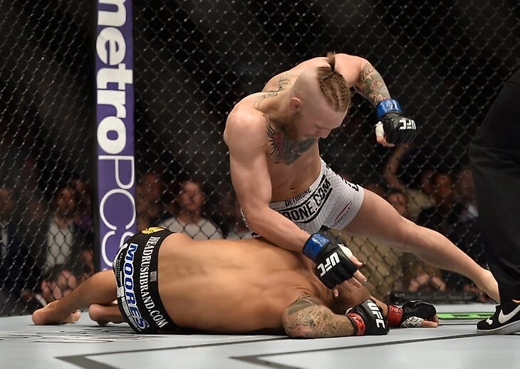 Возможно, 25-летний Конор не видел угрозы в щуплом 21-летнем Холлоуэее или, наоборот, опасался его ударной техники – но это был второй раз в карьере, когда Конор контролировал соперника в партере (первый на CWFC 47, где в титульном поединке он задушил Дэйва Хилла).