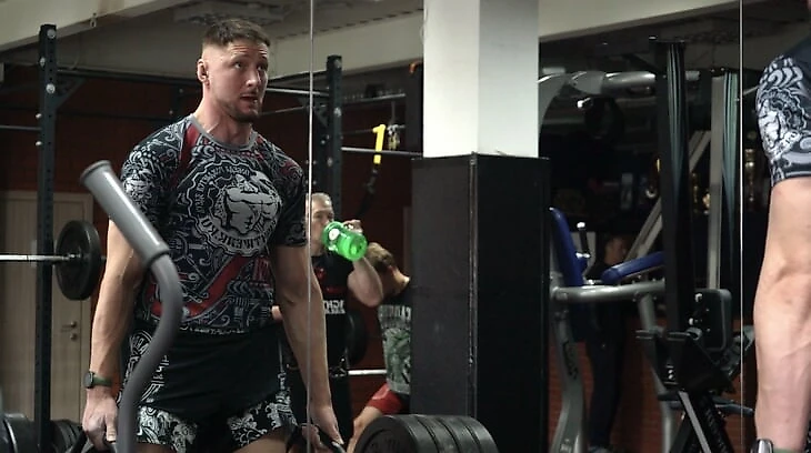 Мы общались с Василием 12 июня – ровно за 2 недели до боя Волкова с Сирилом Ганом. И сразу после записи тренер пошел контролировать Александра, у которого была становая тяга. И это удивительно – лагерь бойца не прекращает тренировки с железом даже за такой промежуток времени.