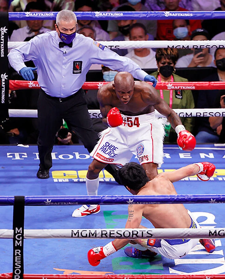 Последний раз подобное произошло в поединке с Шоном Портером в марте 2019 года. К поединку против Мэнни он подходил в статусе откровенного андердога, и едва ли кто-то на него ставил, даже несмотря на огромный простой филиппинца в два года. Первый раунд лишь убеждал, что у будущего президента Филиппин не должно возникнуть с Угасом особых проблем. Уже в первой трехминутке у него проходили фирменные комбинации.