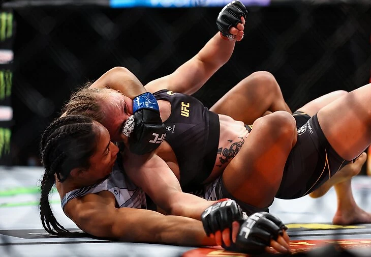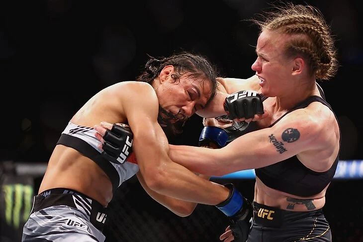 Шевченко победила раздельным решением, и кто-то в зале был недоволен и гудел. Этот бой напомнил встречу Яна со Стерлингом: близкий и опасный поединок, в котором на стороне претендента было много контроля и выходы на удушающие, а на стороне чемпиона – урон в стойке и выигранная концовка. Кто-то считает, что Валентину спасли судьи, но мы с этим не согласны.