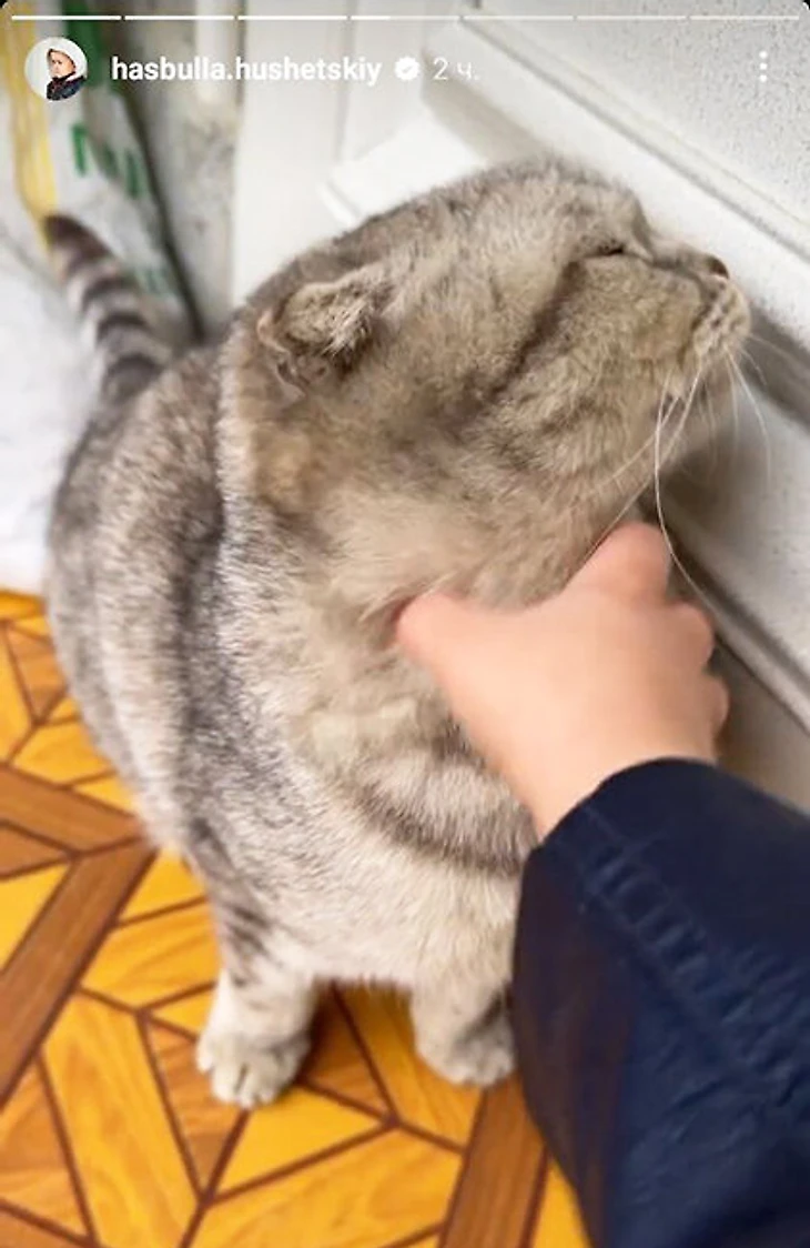 После этого Хасбик выложил несколько видео с котом, где извинился и назвал его любимым животным. «Бум-бум. Знаешь, почему я тебя за ухо потянул? Потому что ты не слушался, на улице фигней страдал», – обратился Хасбик к коту, которого погладил и пустил в дом.