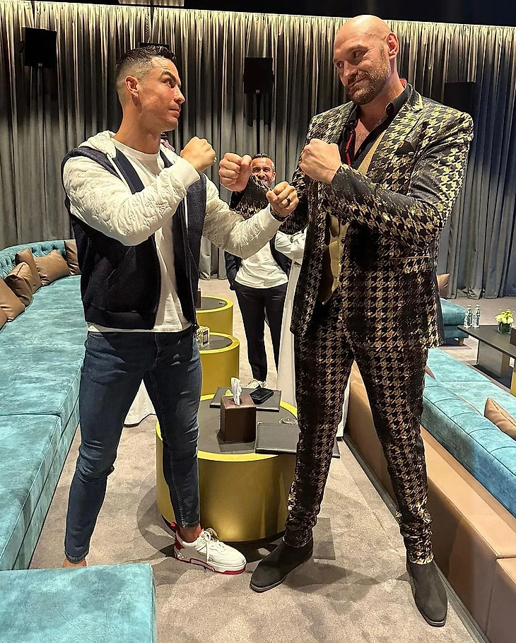 Стадион шумит в ожидании боя. В это время Роналду ходит у ринга – гудели ему?