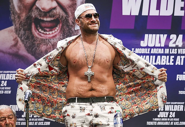 А вот классический Фьюри в костюме-тройке перед первым боем с Деонтеем Уайлдером:
