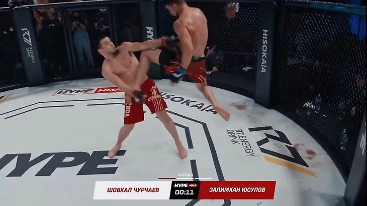 Но бой для Чурчаева вышел разгромным. Если в битве с Юсуповым правила были любительскими, то в Hardcore – привычные три пятиминутки, как в UFC.