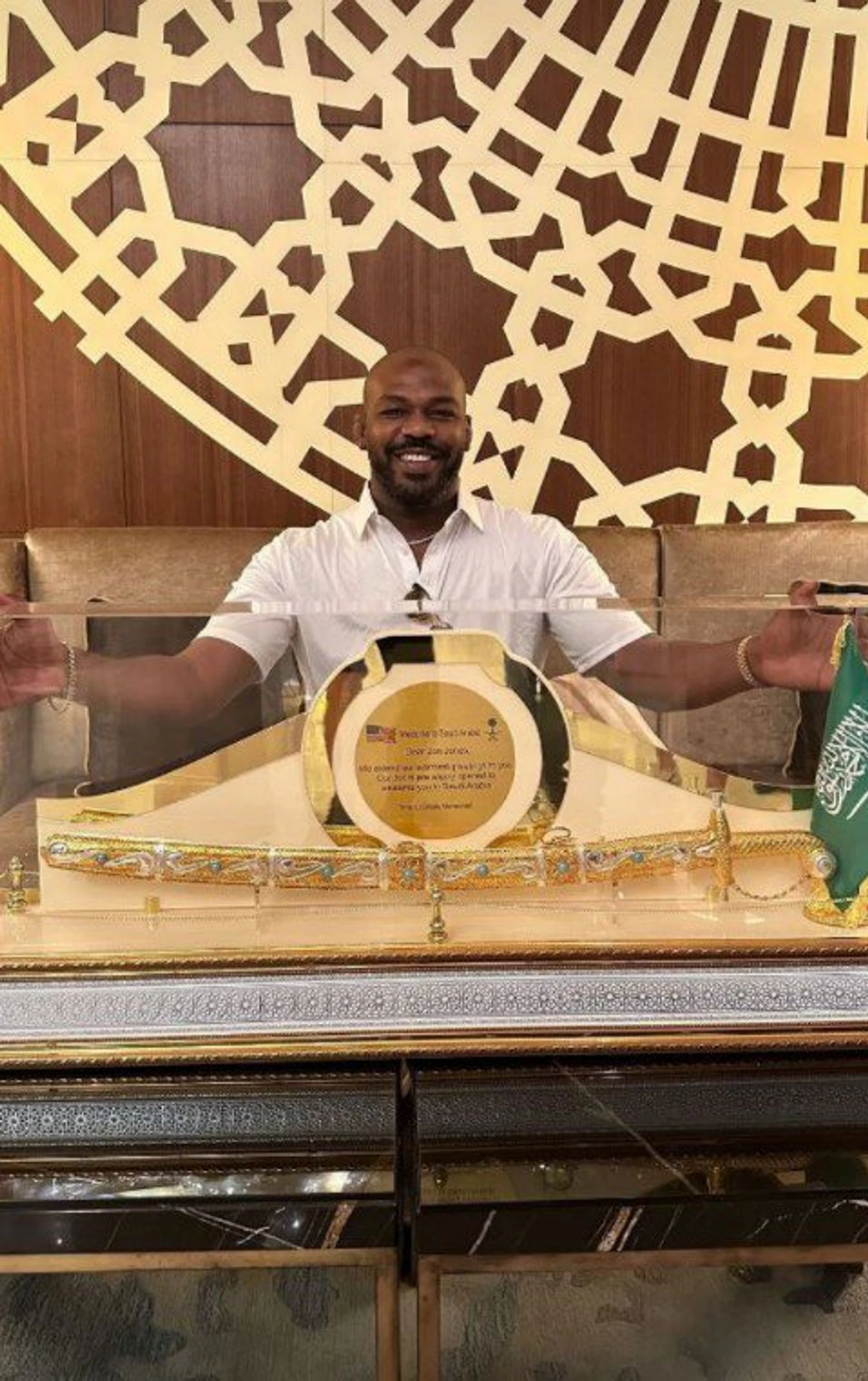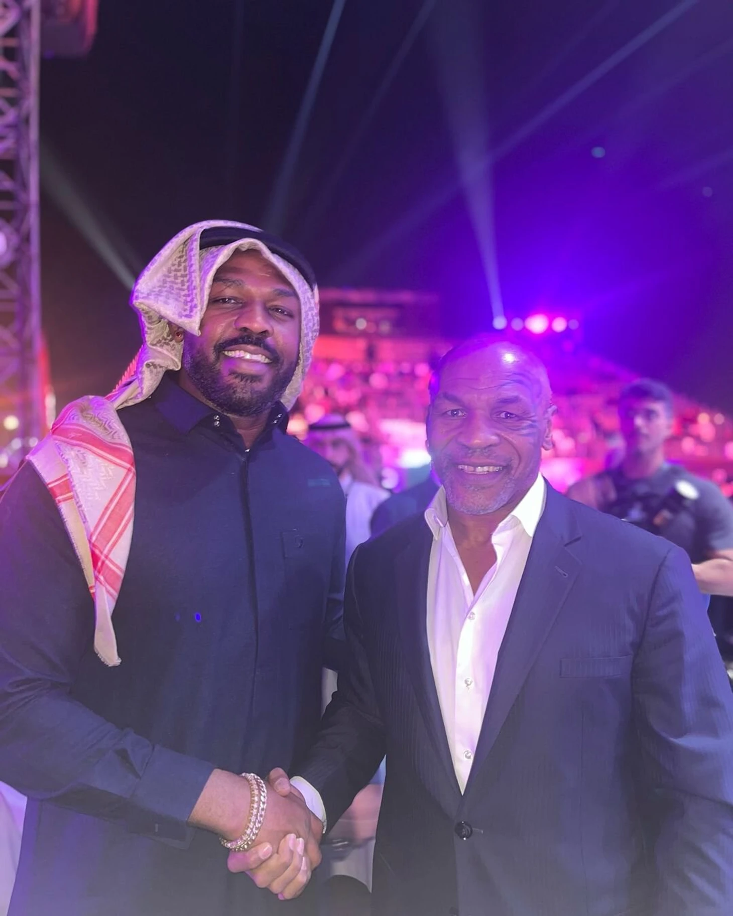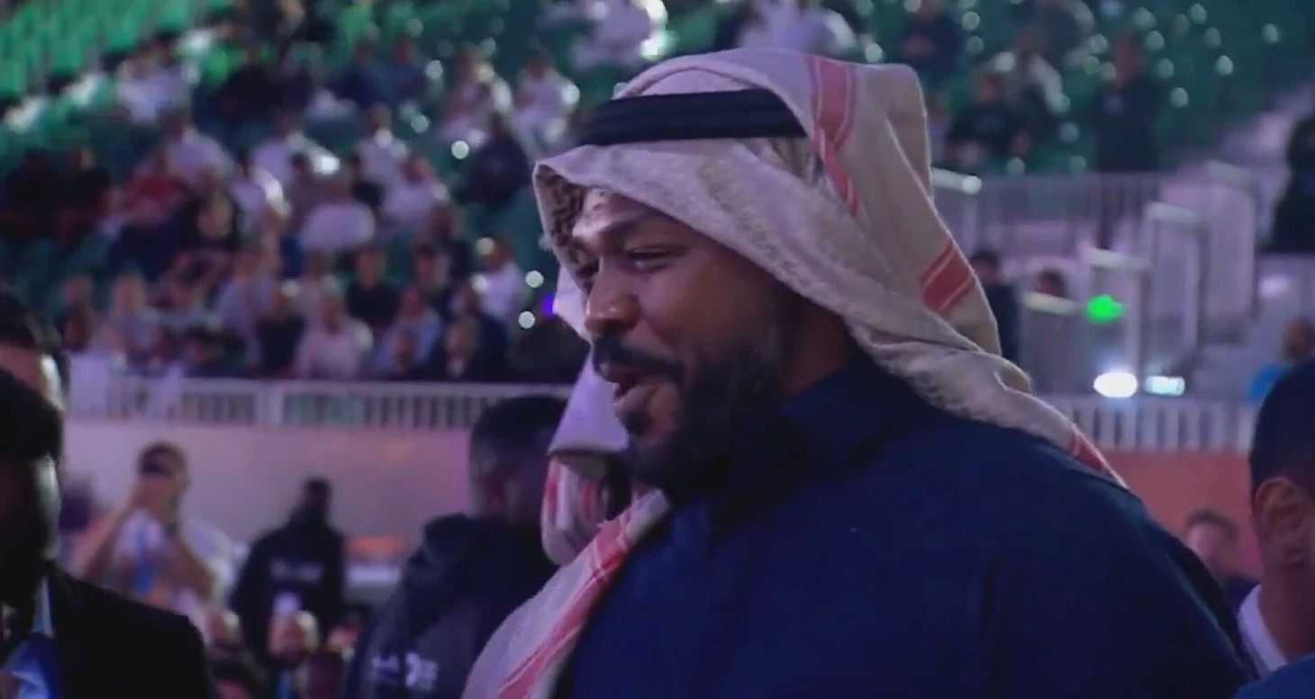 Одно из главных лиц – Джон Джонс, который пока восстанавливается после травмы, но сохраняет пояс UFC в тяжелом весе. В Саудовской Аравии он получил подарок и пришел на стадион в традиционной одежде, где встретился с Майком Тайсоном и поработал экспертом у клетки.