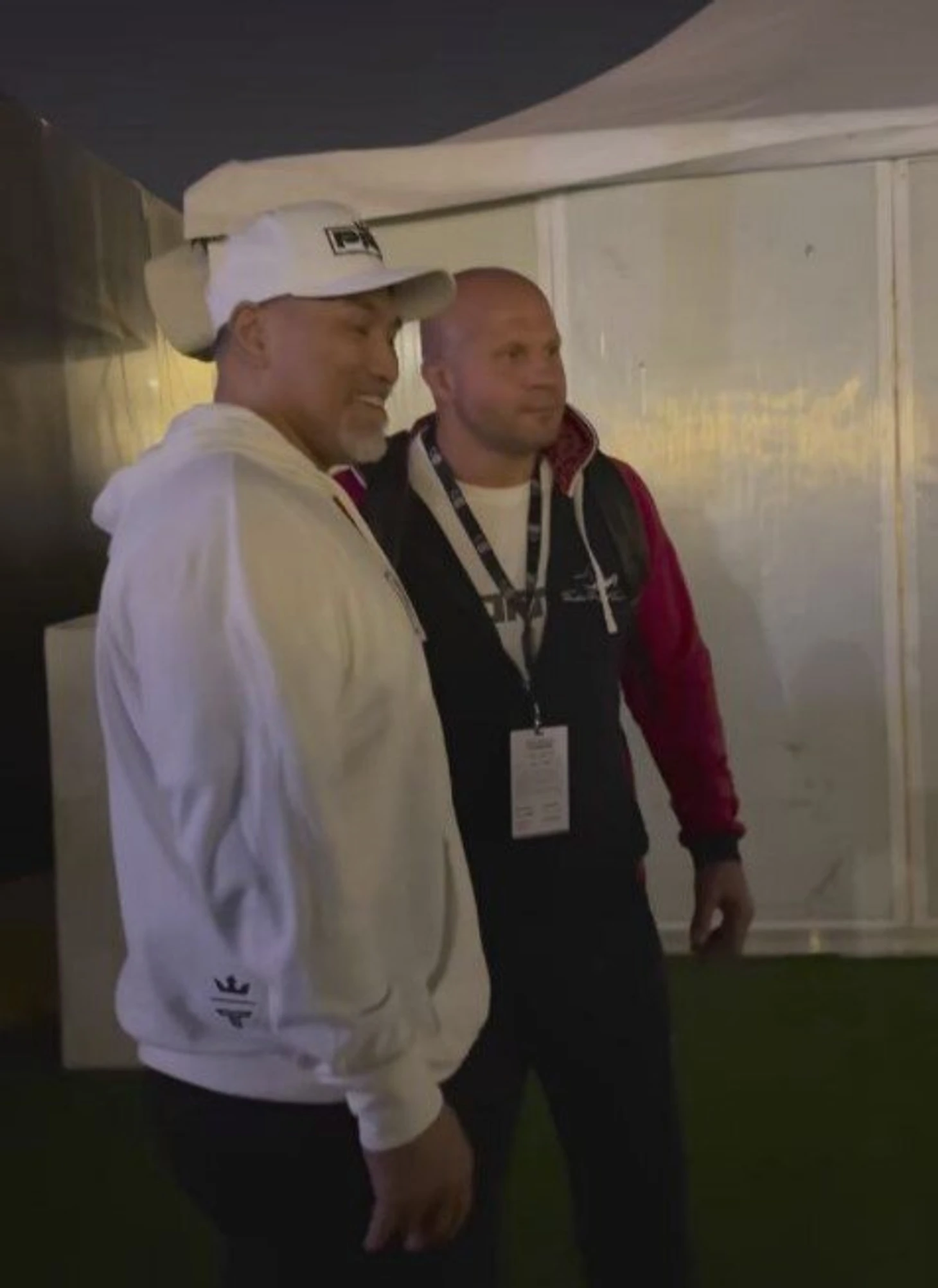 Перед турниром Федор пожал руки с Майком Тайсоном (ждем их бой по боксу?), а уже на стадионе сделал фото с восьмикратным финалистом мирового Гран-При К-1 Рэем Сефо.