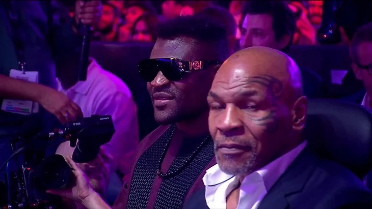 А вот он рядом с Майком Тайсоном, который готовил его к бою против Тайсона Фьюри.