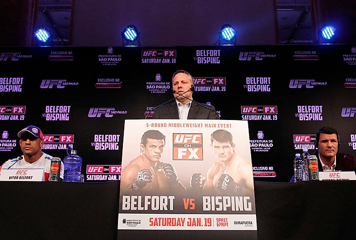 Поединок возглавил турнир в Бразилии – Белфорт выглядел значительно крупнее соперника и после близкой первой пятиминутки отправил Биспинга на настил мощным хай-киком, добив его в граунд-энд-паунде. Придя в себя после нокаута, Биспинг обнаружил, что практически не видит правым глазом – оказалось, что удар Белфорта спровоцировал отслоение сетчатки.