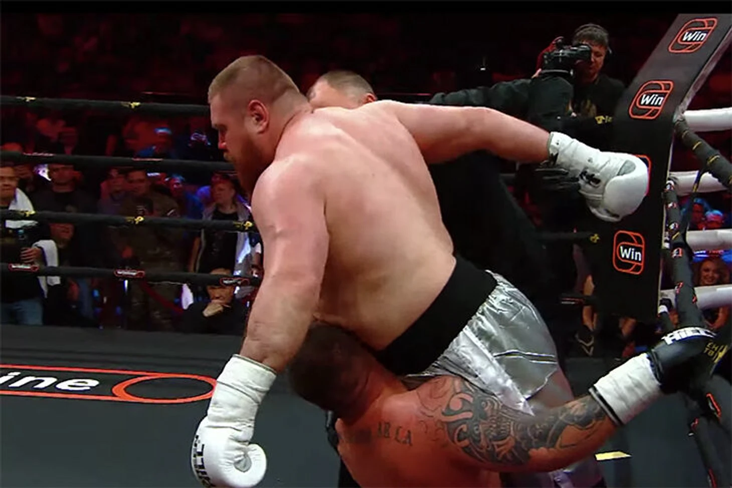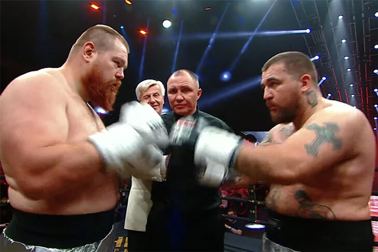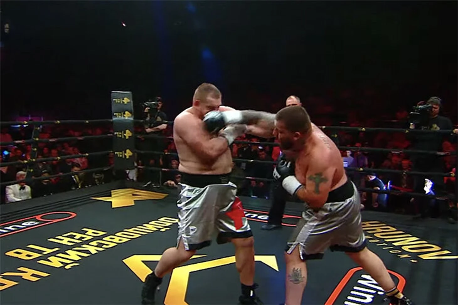 На битве взглядов бойцов разделили металлической сеткой: Дацик изображал дикого зверя, Тернер отбивался. Вес показали богатырский: Тернер 127,5 кг, Дацик – 130,8 кг.