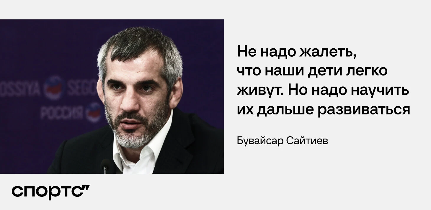 «Я проиграл Махачу Муртазалиеву в 2007 году и после этого приехал на сборы. А первые номера едят за отдельным столом. Я сажусь со всеми в столовой, начальник команды бежит и сажает меня за стол, где сидят первые номера. И я понимаю, что это для всех новая обстановка: Сайтиев не попал в команду [которая едет на чемпионат мира]! Где он теперь сядет!?
