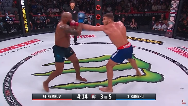Статистика в пользу Немкова, хотя требует некоторой скидки из-за недостаточно крупной выборки. В любом случае она дает понять, что радикальной разницы в оппозиции между Bellator и UFC нет. С понимаем этого можем двинуться к разбору, что показал Немков на протяжении победной серии.