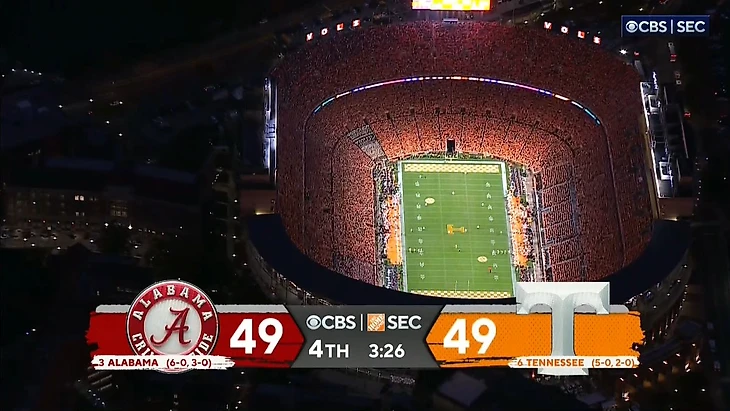 Соперником, который не выигрывал 15 лет.. Алабама подошла к игре на втором месте, Теннесси на шестом, обе без единого поражения и с огромным желанием впервые с 2006 обыграть команду из топ-10. В прошлом тексте мы рассказывали про победу Алабамы над Техасом на последних минутах.