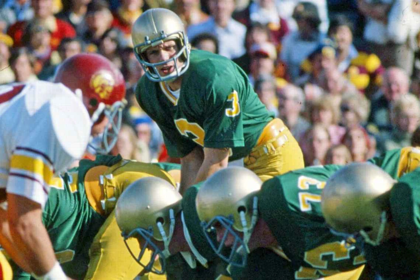 Нотр Дам вышел в зелёном, в футболках в которых например выиграли титул в 1977, выигрывали последний на данный момент титул в 1988 с Луи Холтцом или обыгрывали Флориду со знаменитым Спурьером в 1992. Однако немало фанатов Нотр Дама считает зелёные футболки несчастливыми, проклятыми, во многом из-за неудачного периода 1995-2006 годов, и в том числе игры с Южной Калифорнией в 2007, годовщиной игры с фото ниже. Но тогда Южная Калифорния была заметно лучше. И всё. Да и в 2006 Нотр Дам выиграл в зелёном у Нэви, но тем не менее расхожие фразы про проклятье зелёных футболок существуют.