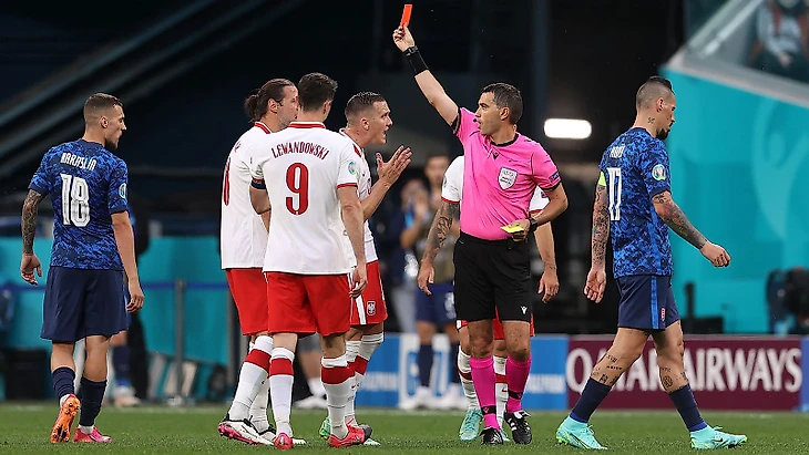 Интересную игру мы могли наблюдать дальше. Сборная Польши встречалась со Словакией в Санкт-Петербурге. С первых минут номинальные хозяева захватили инициативу. Казалось, что у поляков все под контролем, но это было только первые 15 минут. Чуть позже и вовсе Роберт Мак продрался сквозь защитников и пробил по воротам. Мяч, отскочив от штанги, попал в спину вратаря сборной Польши, а от нее в ворота. Далее словаки отдали мяч и играли на контратаках. У обеих команд в первом тайме еще было несколько хороших моментов, но то голкипер играл на высоте, то хромала точность удара. После перерыва сборная Польши вышла максимально заряженной и буквально в первой же атаке поразила ворота гостей. На психологическом подъеме поляки создавали момент и нагнетали обстановку у ворот словаков. Однако, это сыграло с ними злую шутку. Крыховяк наступил на ногу игроку словацкой сборной, за что и получил вторую желтую, а с ней и красную карточку. Игра в корне поменялась. Словакия моментально пошла в наступление, что и вылилось в гол. Милан Шкриньяр удачно сыграл на подборе после углового и реализовал свой момент. Дальше, только после 80 минуты поляки начали создавать моменты, но реализовать ничего не смогли. Очень интересная игра получилась. Обе команды стоят друг друга, интересно будет посмотреть на их игру с другими командами в группе. Много вопросов оставили своей игрой поляки. Очень похоже, что не в самой хорошей форме находятся игроки.