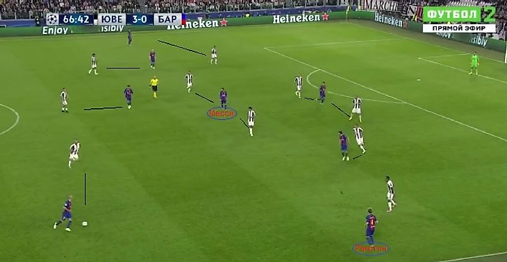 Месси в центре, Ракитич на фланге. Однако все по-прежнему под присмотром бьянконери